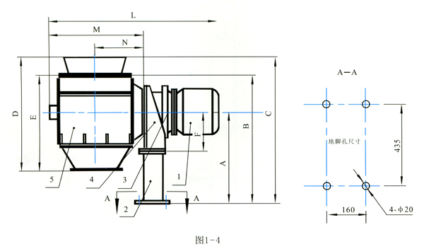 1、電動機 2、支架 3、減速機 4、機架 5、整料箱體