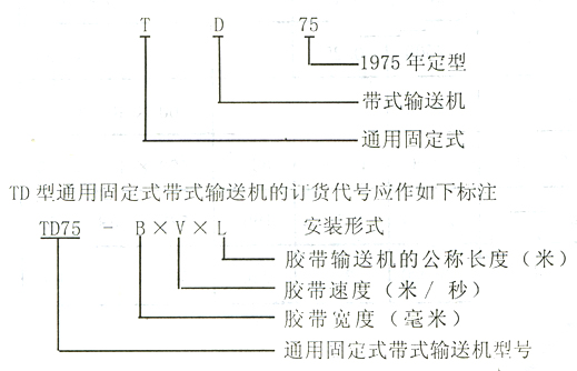TD型通用固定式帶式輸送機的產品代號為TD75,其意義如下: